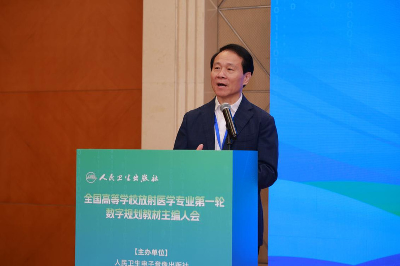 詹启敏院士在致辞中回顾了放射医学教材的建设成就,指出放射医学作为一门独立学科诞生以来,其教材的建设便承载着传承知识、启迪智慧、培养人才的重要使命,本次放射医学数字规划教材的建设,不仅要继承以往教材的优良传统,更要与时俱进、强化思想政治引领、注重学科交叉融合,拓宽学生的知识视野,为我国放射医学专业高素质、复合型一流人才培养提供有力支撑。
