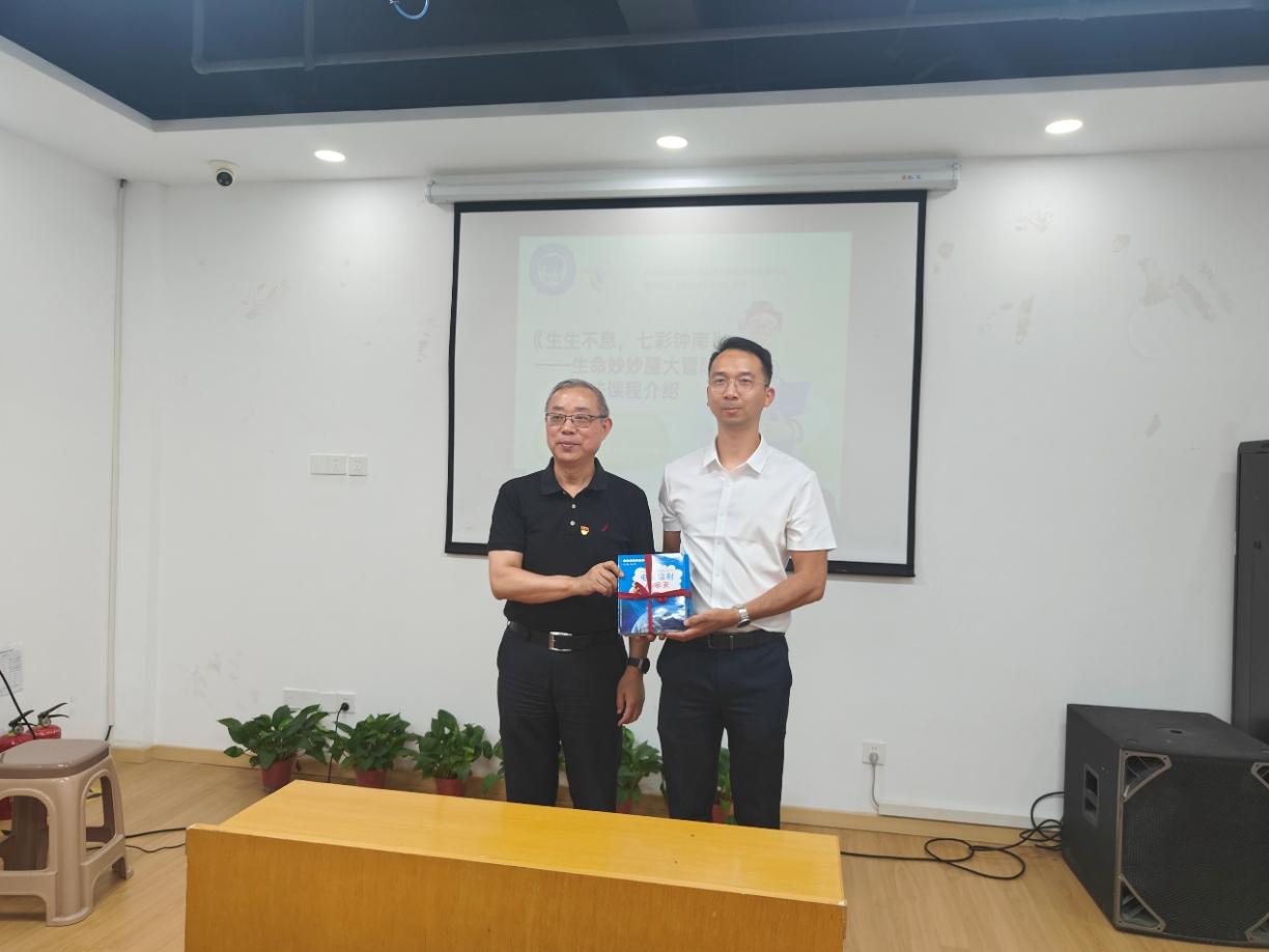 在赠书仪式上,学院党委委员曹建平教授与党支部书记焦旸教授代表实验室向社区捐赠《辐射与健康》、《放射性核素小侦探》两套科普丛书。这些图文并茂的书籍,承载着支部党员对青少年科学启蒙的殷切期望,将助力孩子们在暑期探索生命科学的奥秘。紧接着,支部党员赵琳老师全面介绍《生生不息,七彩钟南》系列课程,包含“钟南小院士”志愿先锋队特训营、第三届 “鸿辐杯”青少年核科普创意大赛等特色活动,将在暑期持续激发青少年科学探索热情。