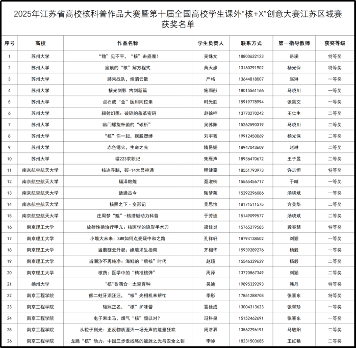 2025年江苏省高校核科普作品大赛暨第十届全国高校学生课外“核+X”创意大赛江苏区域赛在苏州大学举办