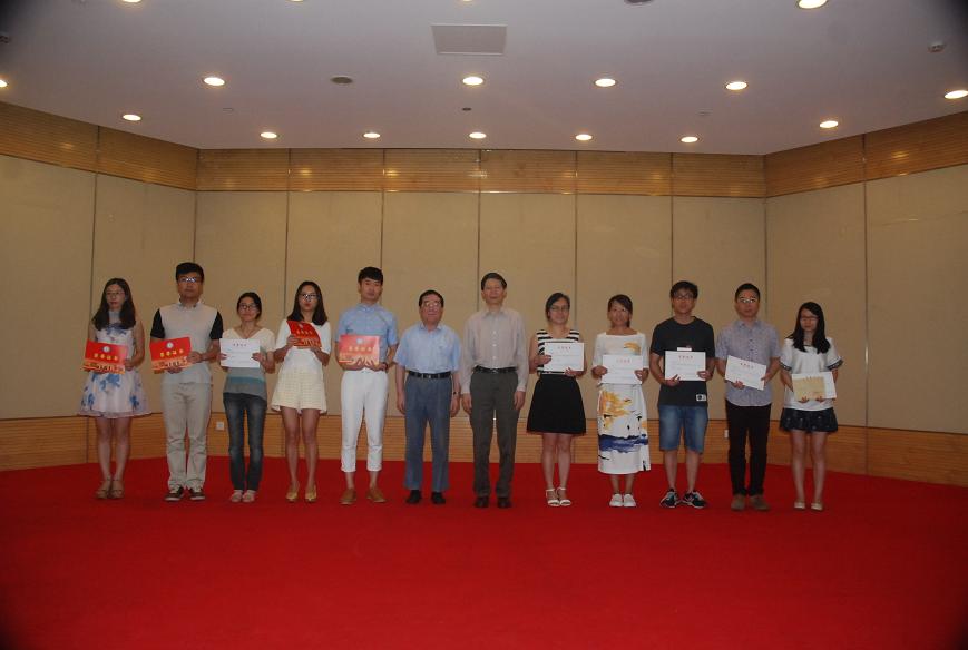 医学部副主任夏超明和医学部党工委副书记黎春虹分别宣读了获奖研究生和本科生名单。朱秀林校长、柴之芳院士、宁正法部长、杨建宇董事长、陈晓强处长、邹学海书记、乔树挺副总经理担任颁奖嘉宾,分别向获得上述三类奖学金的同学颁发了荣誉证书、奖学金并合影留念。