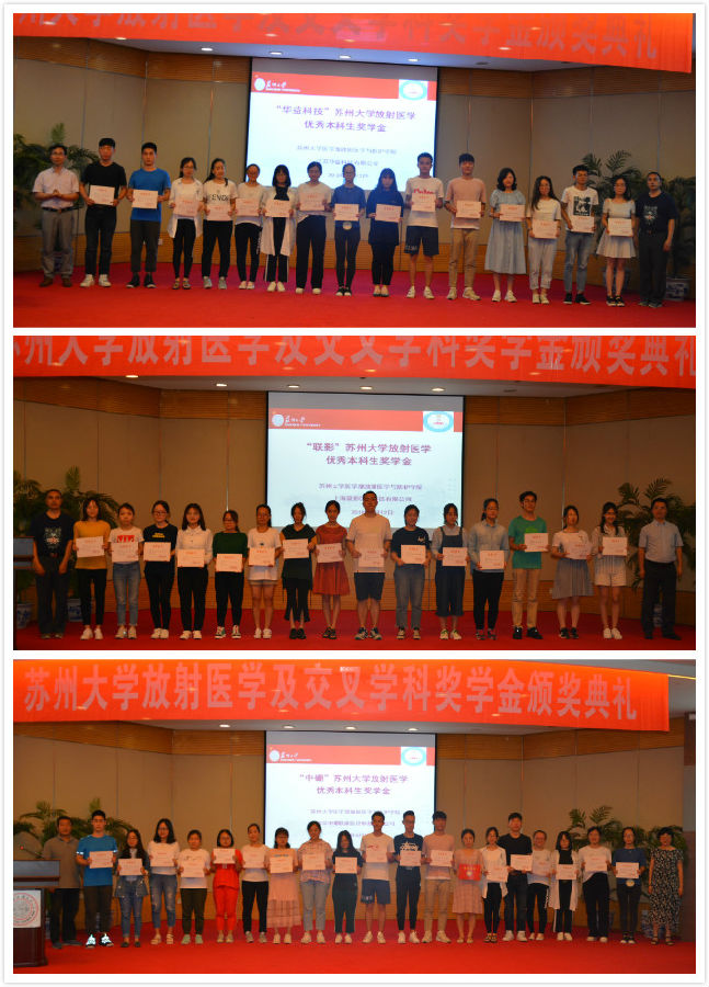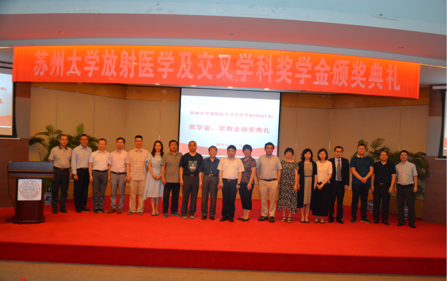 6月12日下午,苏州大学放射医学及交叉学科(RAD-X)研究院2018年本科生、研究生、优秀青年教师颁奖典礼在苏州大学独墅湖校区学术报告厅隆重举行。苏州大学副校长陈卫昌、研究生工作部部长吴雪梅、学生工作处副处长陈平、医学部主任秦樾、医学部学工办主任温洪波,以及设奖单位的代表应邀参加本次颁奖典礼。苏大放射医学及交叉学科研究院院长柴之芳院士、常务副院长高明远、党委书记曹建平、副院长许玉杰、获得本年度奖教金和奖学金的老师和同学、学院全体教职员工、本科生和研究生代表等参加了颁奖典礼。会议由学院常务副院长高明远主持。
