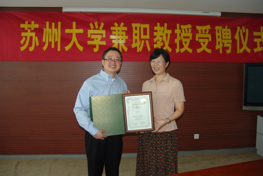 2013年6月24日上午,罗培志、赵永俊苏州大学兼职教授受聘仪式在独墅湖校区炳麟图书馆820会议室举行。出席受聘仪式的有医学部常务副主任黄瑞,医学部放射医学与防护学院、放射医学及交叉学科研究院院长柴之芳,医学部副主任曹建平,医学部放射医学与防护学院党委书记、苏州大学附属第一医院党委副书记兼纪委书记陈赞,我院兼职教授周如鸿,医学部放射医学与防护学院副院长许玉杰以及学院教师、研究生。受聘仪式由陈赞主持。