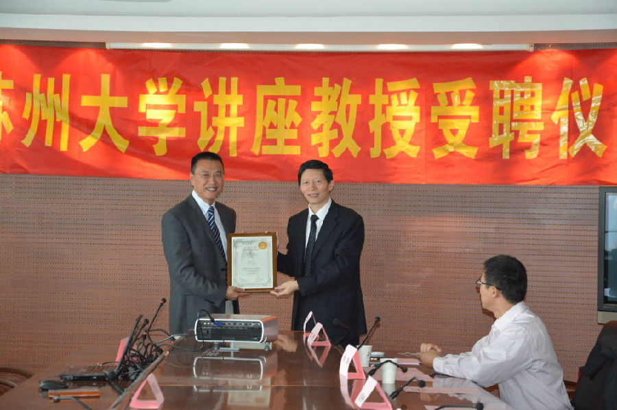 2013年10月20日上午,高明远苏州大学讲座教授受聘仪式在独墅湖校区炳麟图书馆820会议室举行。出席受聘仪式的有我校朱秀林校长,医学部放射医学与防护学院、放射医学及交叉学科研究院院长柴之芳,医学部放射医学与防护学院党委书记、苏州大学附属第一医院党委副书记兼纪委书记陈赞,医学部放射医学与防护学院副院长许玉杰以及学院教师、研究生代表。受聘仪式由陈赞主持。