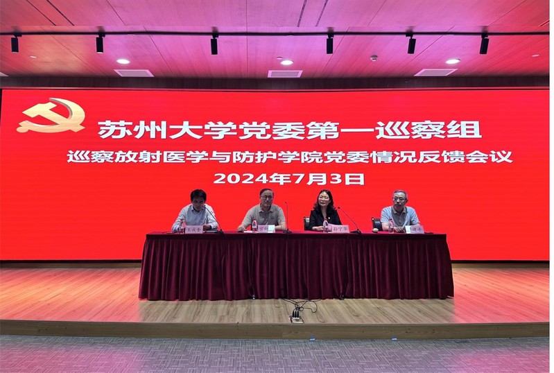 根据学校党委统一部署,7月3日上午,校十三届党委第三轮巡察第一巡察组巡察放射医学与防护学院党委情况反馈会在医学楼四楼学术报告厅召开。校党委常委、纪委书记、派驻监察专员、巡察领导小组办公室主任宫向阳,校党委委员、东吴学院党委书记、第一巡察组副组长孙宁华,后勤基建党委副书记陈晓刚,产业技术研究院副院长田天,人力资源处博士后管理办公室主任徐飞,马克思主义学院思想道德与法治教研室党支部书记臧政出席会议,放射医学与防护学院全体教职工参加会议。会议由放射医学与防护学院党委书记王成奎主持。