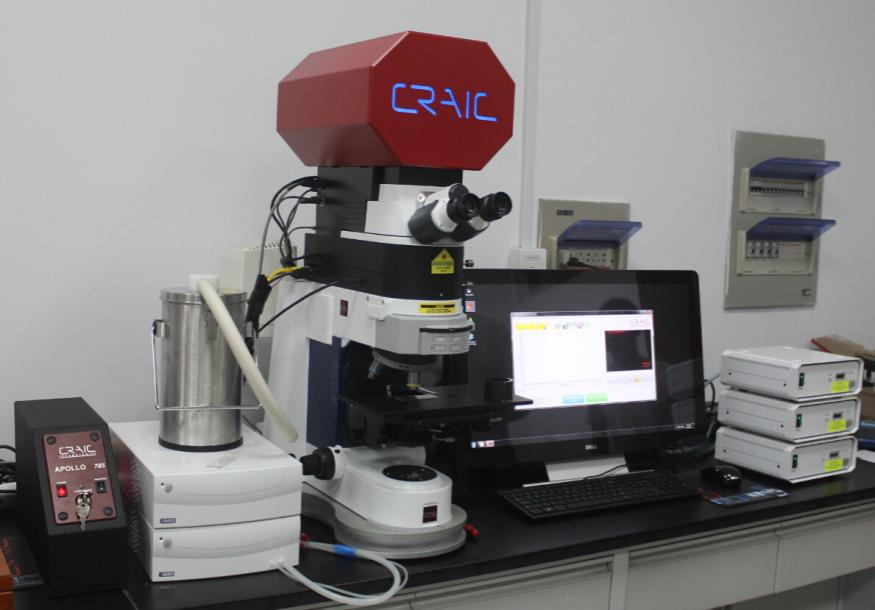 型号:20/30PV,购于美国CRAIC公司,紫外可见近红外微米级固态光谱仪集成系统(简称固态光谱仪)集成了显微镜和光谱仪,利用显微镜的光路系统,可在极短时间内方便地测定微米级(检测下限达到2微米)固态颗粒的紫外-可见-近红外光波段的透射光谱、吸收光谱,反射光谱,荧光光谱及785纳米激光下的拉曼光谱,利用附加的可控变温台,可以进行-80℃至450℃范围内的测试。并可利用各种光谱用于微米级固体拍摄成像,是一台集多种常见光谱表征手段于一身,并具有强大成像功能的仪器系统。