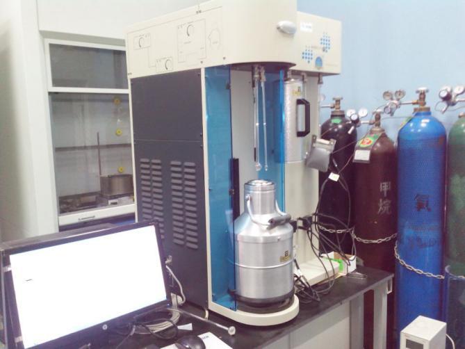 型号:Autosorb-IQ2,美国Quantachrome仪器公司产品。比表面积测试下限低至0.0001m2/g (Kr 测量),孔径分析范围:3.5 埃至5000 埃(氮气吸附),微孔区段的分辨率为0.2 埃 ,孔体积最小检测:0.0001 cc/g。灵敏度高。可进行单点、多点BET比表面积,Langmuir比表面积,BJH中孔、孔分布、孔大小及总孔体积和面积的测试。该仪器用于全面地测定具有微孔的物质(如沸石,活性炭,催化剂等)的特性,还可以用于测定表面积、孔径分布等。适用于各种材料的研究与产品测试,包括测量沸石、碳材料、分子筛、二氧化硅、氧化铝、土壤、黏土、有机金属化合物骨架结构等各种材料。另外,该系统可以进行多种气体的吸附,包括:N2, Ar, Kr, CO, CO2, H2, He,饱和烷烃及放射性气体氚气和氡等。
