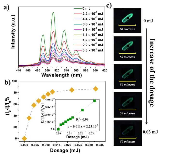 The accurate detection of UV radiation are required in a wide range of chemical industries, environmental and biologicalrelated applications. Conventional methods taking advantage of semiconductor photodetectors surfer from several drawbackssuch as sophisticated synthesis and manufacturing procedure, not being able to measure the accumulated UV dosage as wellas high defect density in the material. Searching for new strategies or materials serving as precise UV dosage sensor with extremelylow detection limit is still highly desirable. In this work, a radiation resistant uranium-organic framework [UO2(L)(DMF)] (L = 5-Nitroisophthalic acid, DMF = N,N-Dimethylformamide, denoted as compound 1) was successfully synthesized through mild solvothermalmethod and investigated as a unique UV probe with the detection limit of 2.4 × 10-7 J. Based on the UV dosage dependentluminescence spectra, EPR ****ysis, single crystal structure investigation and the DFT calculation, the UV-induced radicalquenching mechani** was confirmed. Importantly, the generated radicals are of significant stability which offers the opportunityfor measuring the accumulated UV radiation dosage. Furthermore, the powder material of compound 1 was further upgraded intomembrane material without loss in luminescence intensity to investigate the real application potentials. To the best of ourknowledge, compound 1 represents the most sensitive coordination polymer based UV dosage probe reported up to date.