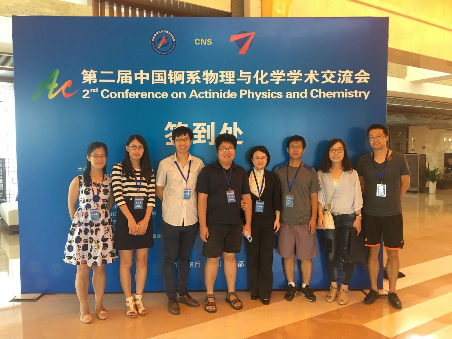 2016年825日至28日,核能环境化学中心王殳凹教授,第五娟教授,王艳龙,郑滔,陈兰花,王亚星等老师参加了在绵阳举办的“第二届中国锕系物理与化学学术交流会”。王殳凹教授应邀做了在锕系化学分会场做了题为《功能配合物在防治放射性污染中的应用》的邀请报告,介绍了苏州大学核能环境化学中心的工作进展和相关科研成果,与会专家学者进行了交流讨论。第五娟教授介绍了近期利用单晶结构研究铀在溶剂热条件下的原位还原工作;王艳龙老师,郑滔老师分别介绍了锕系金属有机骨架材料去除放射性SrCs和稳定的多孔膦酸锆金属有机骨架用于极端条件下铀去除等方面的工作。陈兰花,王亚星参加了张贴报告交流,其中陈兰花老师《含有UIV),UV),UVI)的三重价态有机磷酸化合物》获得大会优秀展板奖。