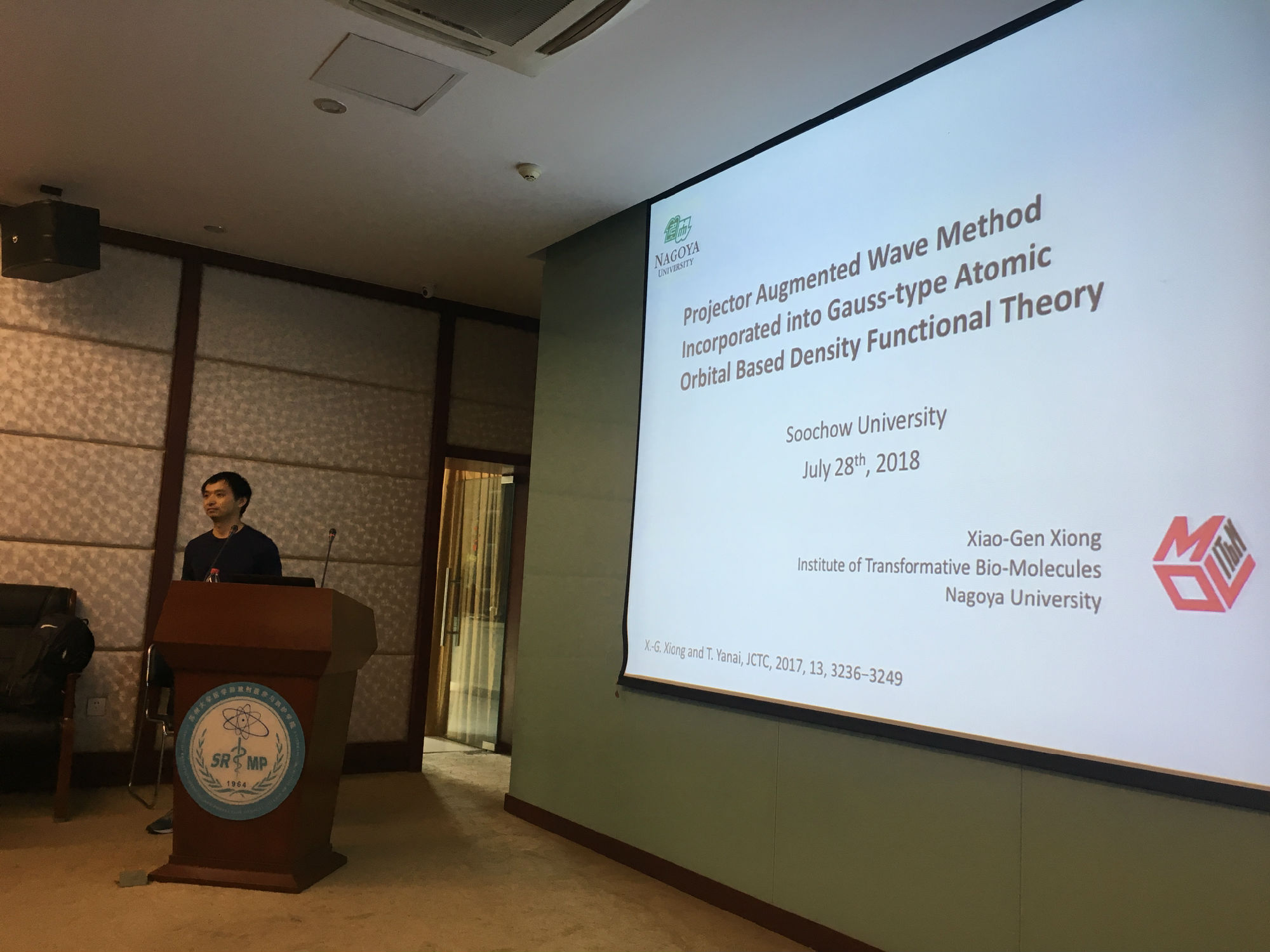 日本名古屋大学熊孝根博士应邀到中心进行学术交流。熊博士师承清华大学李隽教授,早年从事锕系元素的计算化学研究,目前致力于于Projector Augmented Wave(PAW)方法研究。熊孝根博士向中心师生介绍了PAW方法的基本理论和基本事例,让大家对PAW方法有了全面的了解,之后就双方下一步的紧密合作进行了友好的交谈。